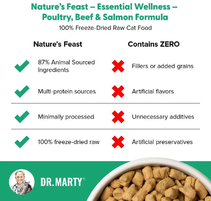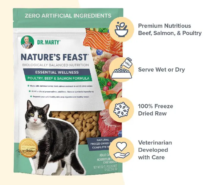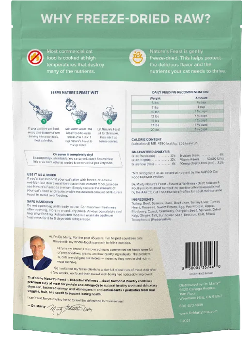 Dr. Marty Nature's Feast Essential Wellness Beef, Salmon & Poultry Freeze-dried Cat Food 12-oz