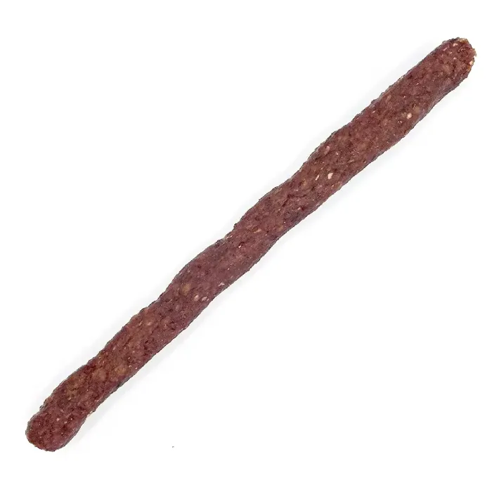 This chew is made up of ground beef, beef skin, and beef pizzle, that has been mixed up and formed into a stick shape and baked.