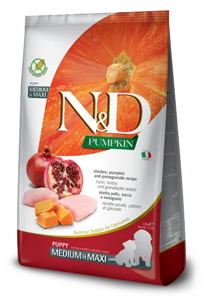 N&D Pumpkin Chicken, Pumpkin, and Pomegranate recipe is formulated to meet the nutritional levels established by the AAFCO Dog Food Nutrient Profiles for All Life Stages including growth of large size dogs (70 lb. or more as an adult).