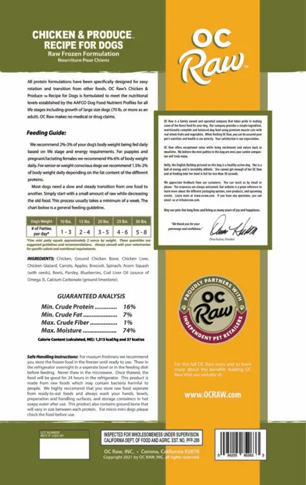 OC Raw Dog Raw Frzn Chicken 6.5 lb