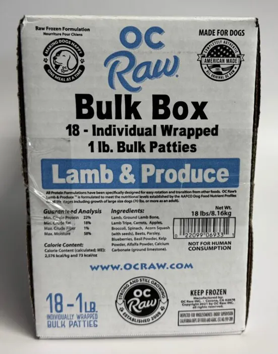 OC Raw Dog Raw Frzn Lamb & Produce 18 lb