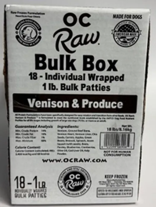 OC Raw Dog Raw Frzn Venison & Produce 18 lb