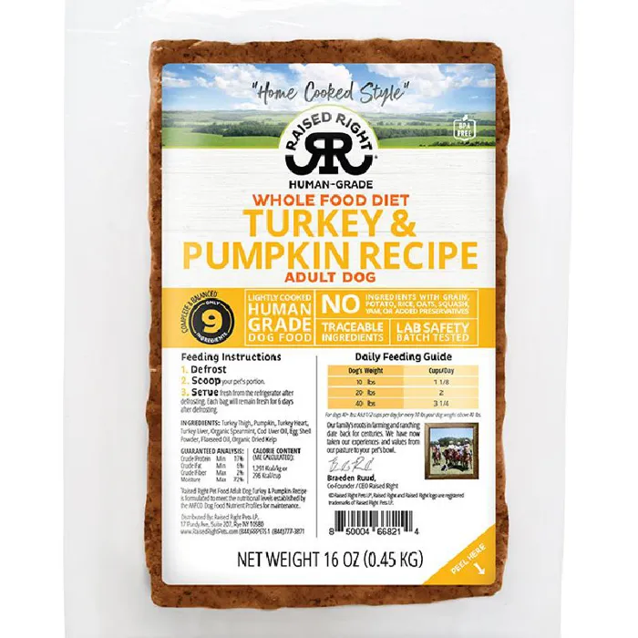 Raised Right Dog Frzn Cooked Turkey & Pumpkin 1 lb